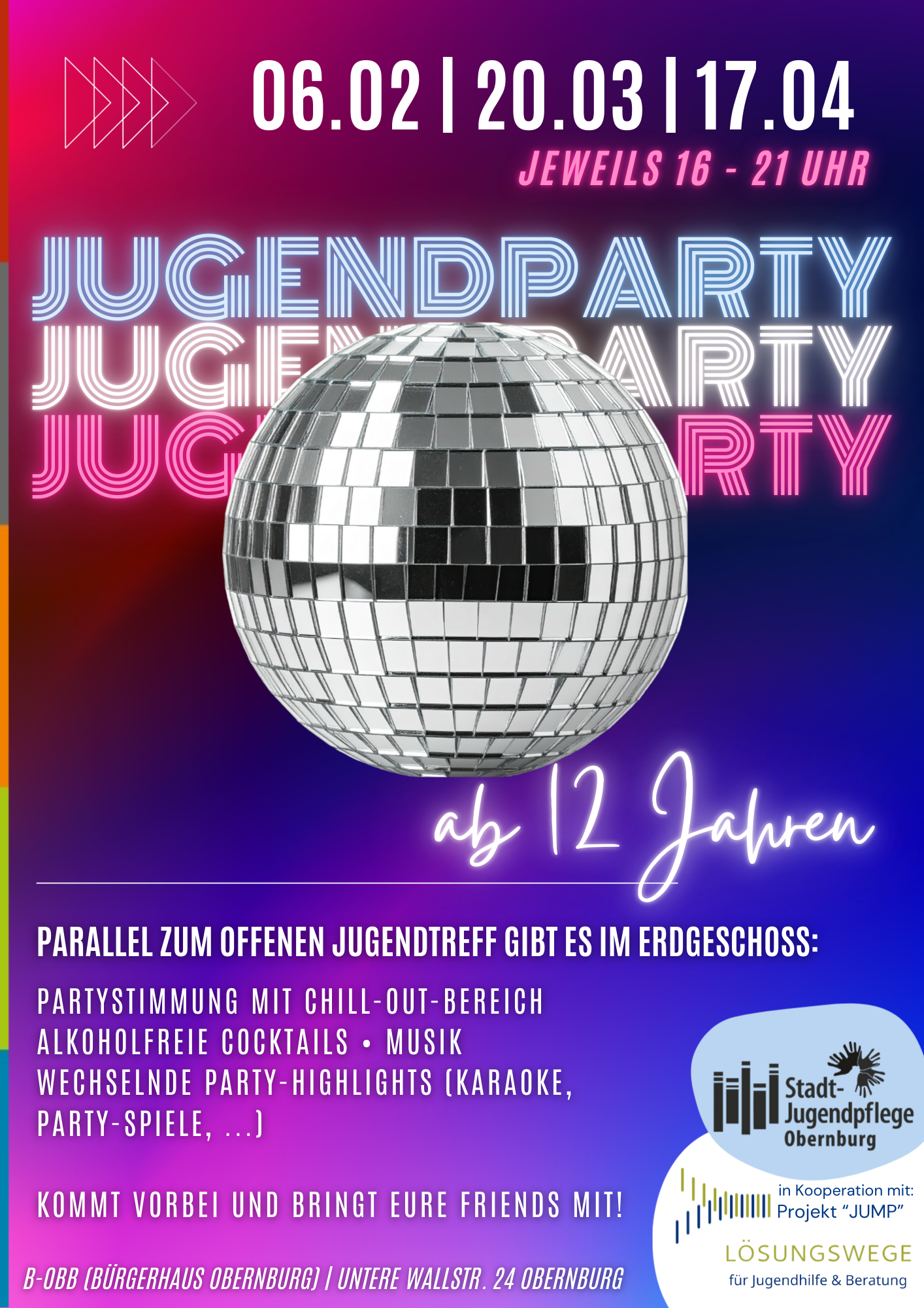 Im Rahmen des offenen Jugendtreffs findet im B-OBB eine Jugendparty-Reihe für alle Jugendlichen ab 12 Jahren statt.