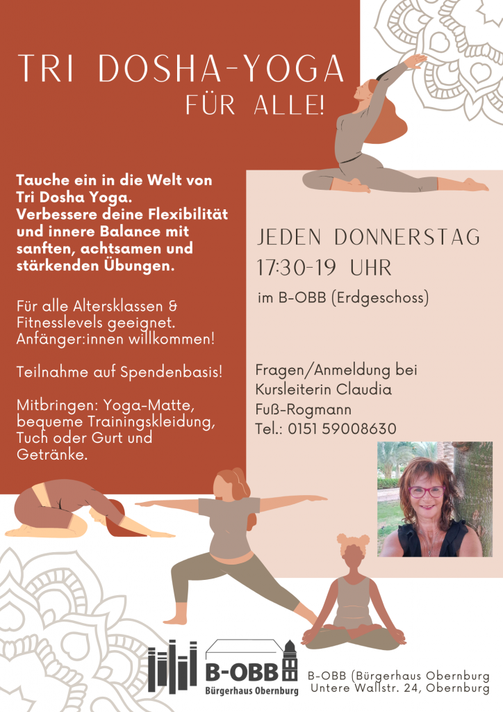 Im Tridosha werden Vata – das Bewegungsprinzip, Pitta – das Transformationsprinzip, und Kapha – das Strukturprinzip vereint. Sanfte, liebevolle, achtsam und trotzdem intensive Asanas (Übungen) erwarten Euch.