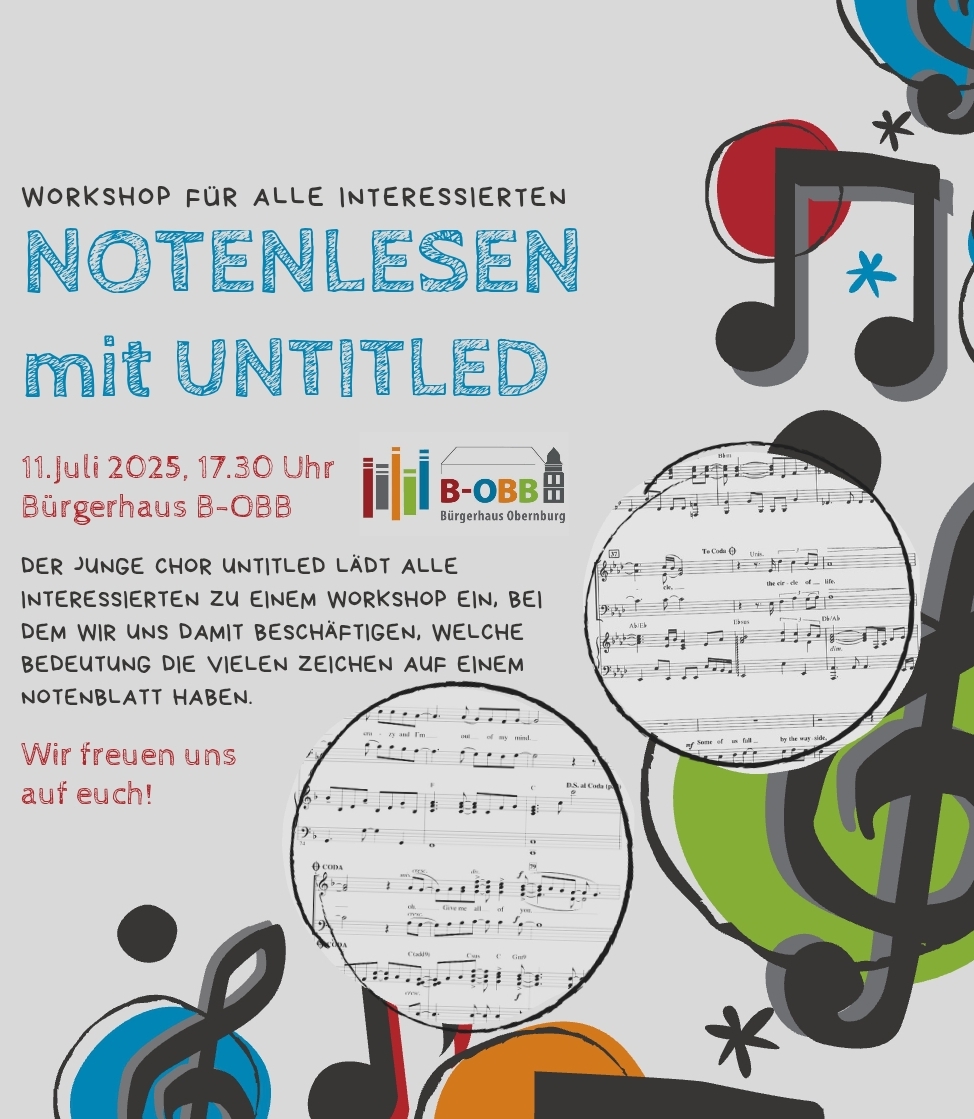 Am 11. Juli 2025 um 17:30 Uhr lädt der Junge Chor UNTITLED Euch herzlich ins Bürgerhaus B-OBB ein!