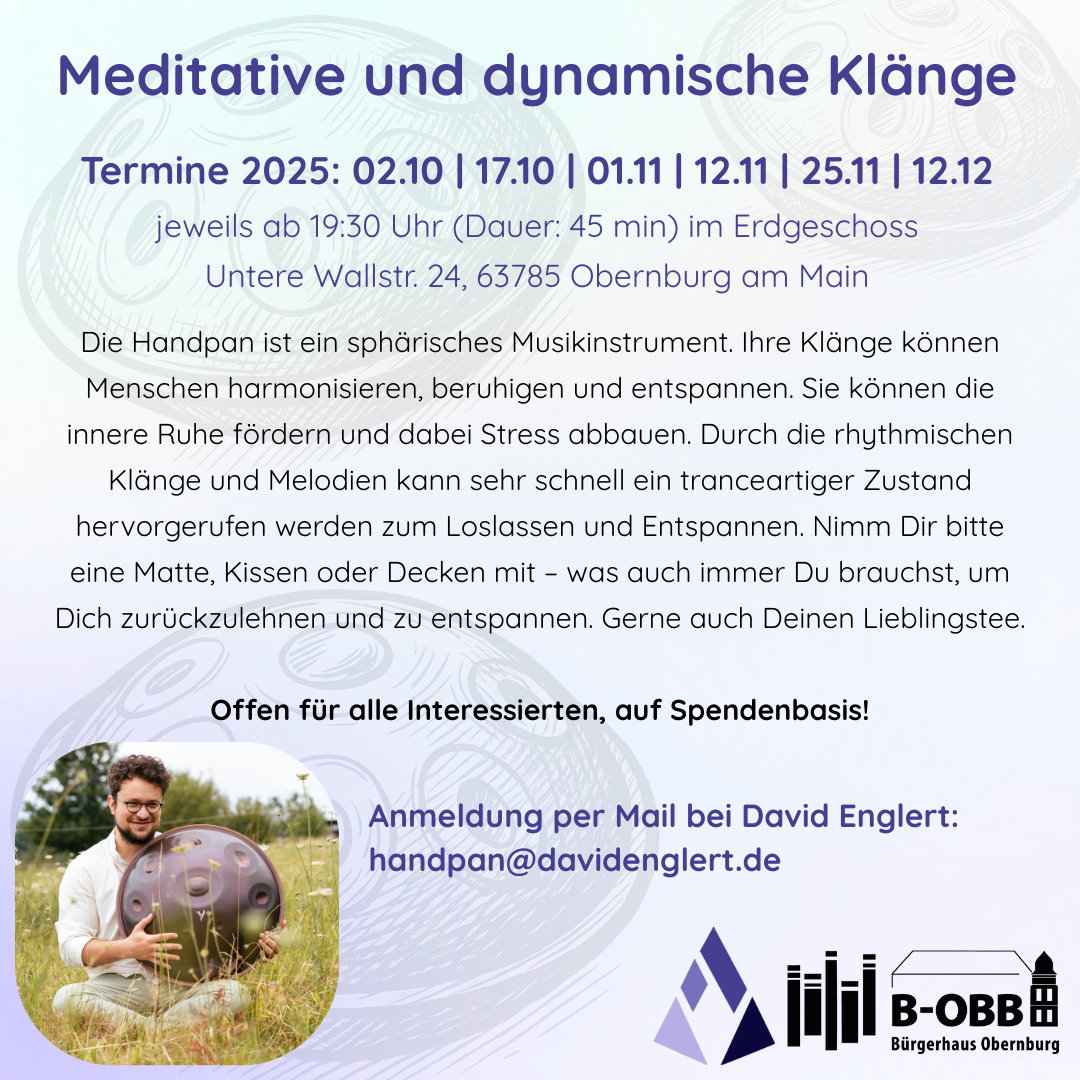 Melde Dich jetzt zu einem (oder mehrern) der Termine an: handpan@davidenglert.de