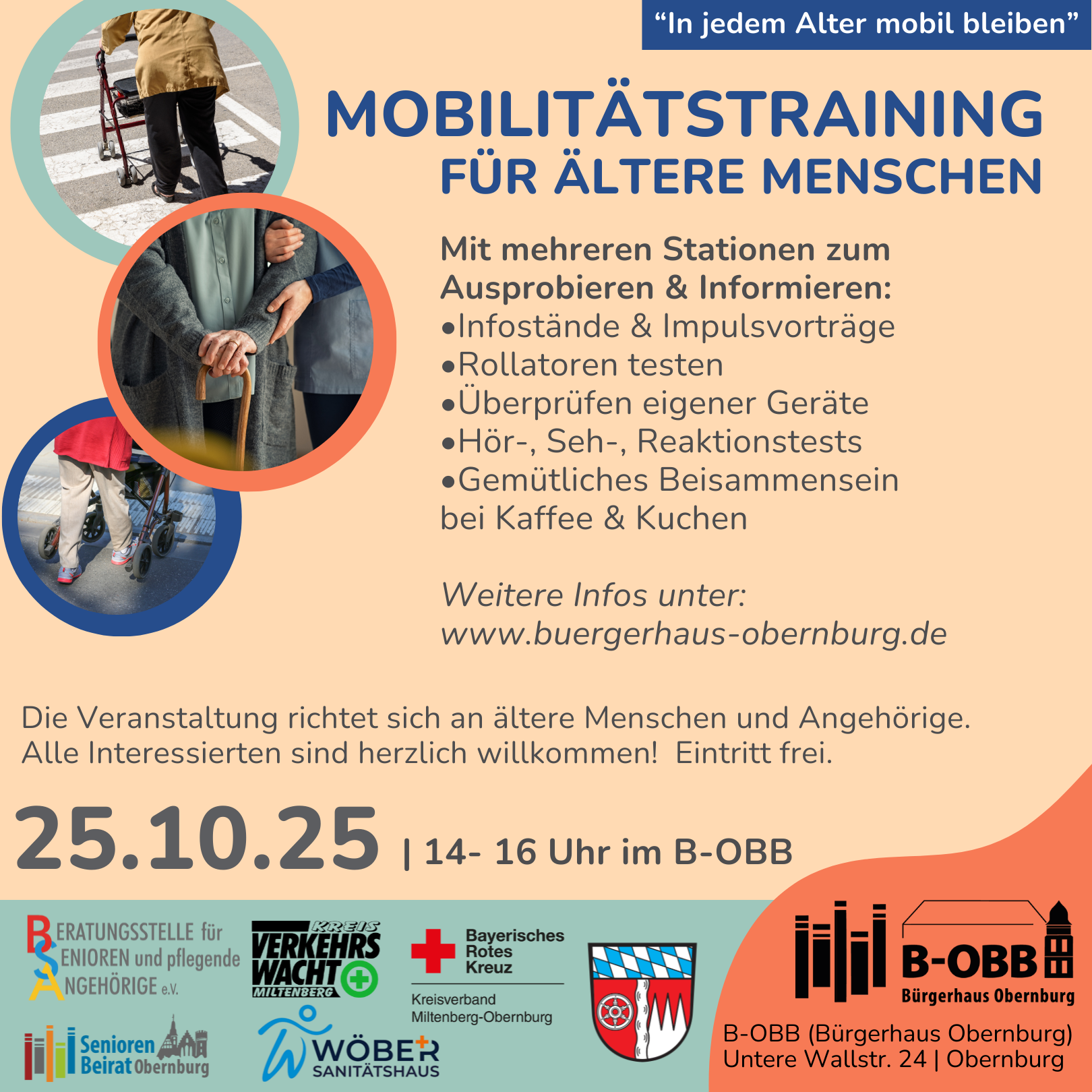 Vielen Dank an alle Kooperationspartner:innen für die Unterstützung: Seniorenbeirat der Stadt Obernburg, Beratungsstelle für Senioren und Pflegende Angehörige e.V. (Fachstelle Wohnberatung), Bayrisches Rotes Kreuz (Kreisverband Miltenberg-Obernburg), Verkehrswacht Miltenberg, Sanitätshaus Wöber, sowie das Landratsamt Miltenberg.