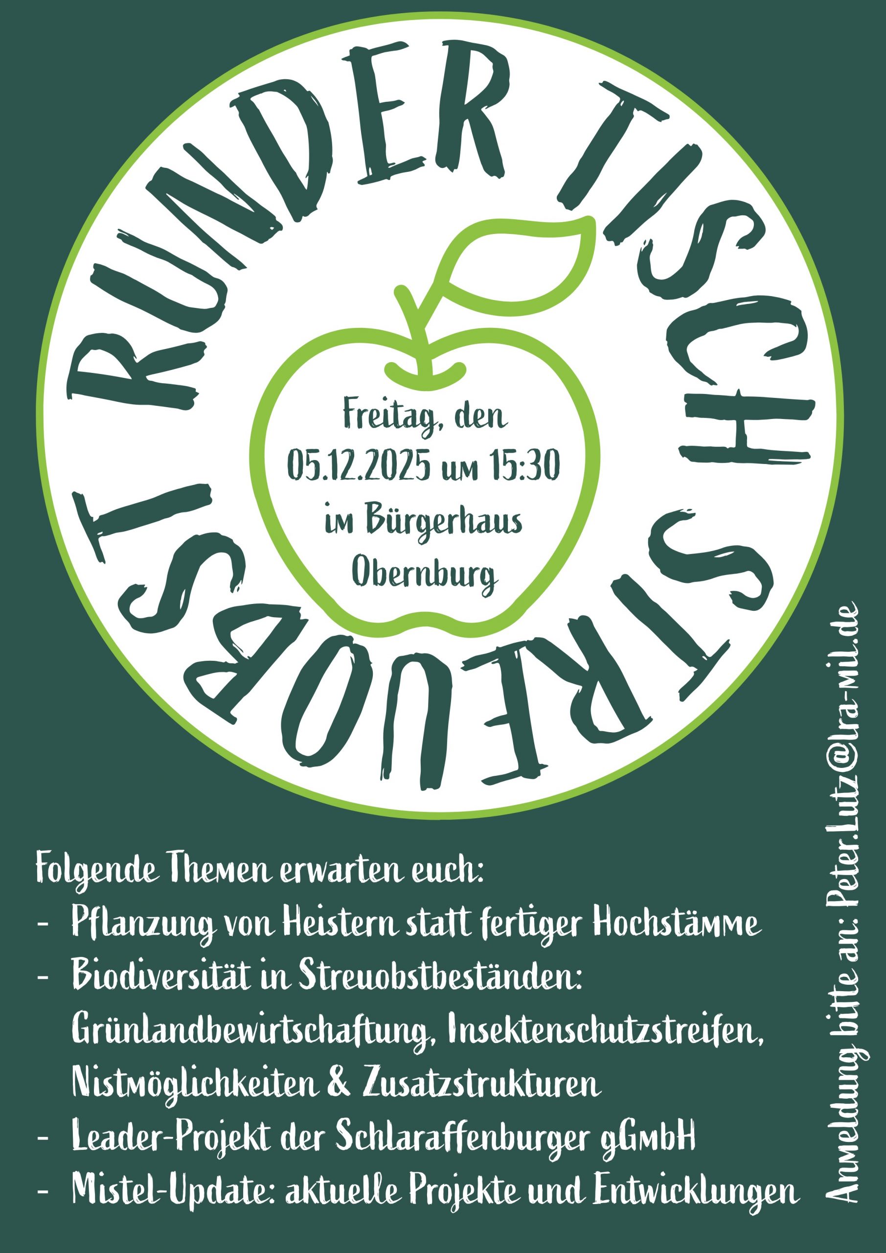 Alle intressierten Streuobstakteure und -begeisterte im Landkreis Miltenberg sind herzlich willkommen. Wir freuen uns auf Ihre Teilnahme und bitten um Anmeldung unter einer der folgenden Adressen: